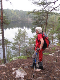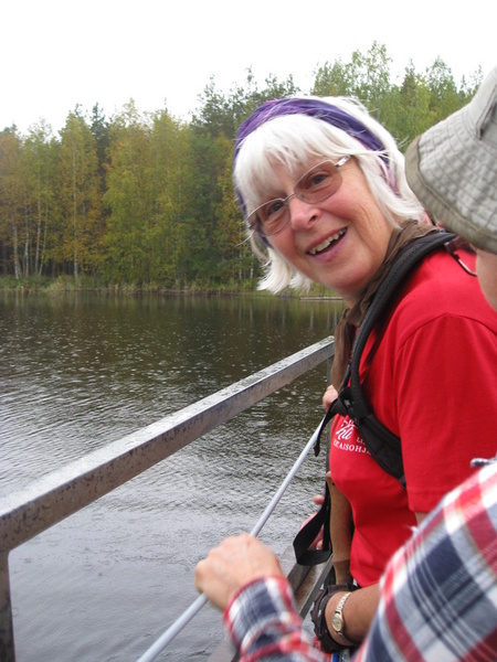 Vaeltajien patikkaretki houkutti mukaansa vaikka en ollut ollenkaan patikointikunnossa. (Tapaturmainen polveni odottaa edelleen rautaista vahvistustaan.) Pääsimme risteilemään Tuuletar II:lla. Tämä oli laivan viimeinen risteily tänä vuonna. Meitä oli kolme "vaivaista vanhaa", Rofa, Väinö ja minä, Leena. Oli sumuista ja välillä satoikin, mutta sehän ei Vaeltajaa säikäytä. Kannella katseltiin kauniita maisemia ja ihmeteltiin Lapinsalmen riippusiltaa. Ei ollut Vihdin Vaeltajia sillalla, olivat kai jo kulkeneet ohi. Joku vieras sieltä vilkutteli. Pysähdyimme Mäntysaareen ja risteilyisäntä kertoi, että koko Repoveden alueella ei ollut sellaista paikkaa, johon voisi tehdä hautausmaan kuin tämä Mäntysaari. Siellä olikin ihan iso hautausmaa. Saaren keskusalue oli tasaista hiekkamaata. Sinne oli rakennettu v. 1911 kellotapuli ja v. 1940 oli pystytetty pieni, sievä kappeli, sisältäkin viehättävä yksinkertaisuudessaan. Olemme meloneet näitä rantoja Vaeltajien kanssa ja oli mukava nähdä ne näinkin. Oli tuttuja kallioita ja telttaretkipaikkoja, Ruskiasalmikin siellä vilahti. Minun mieleeni jäi mukavat muistot ja kiitollinen olo.